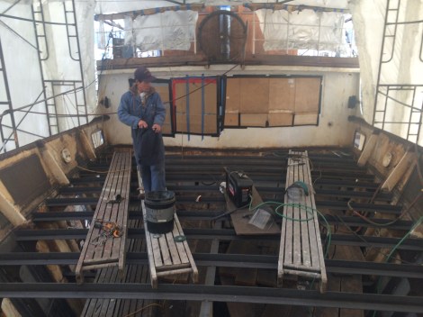 The entire boat forward of the engine room including the master stateroom, foredeck, and fo’c’sle has completed initial restoration.